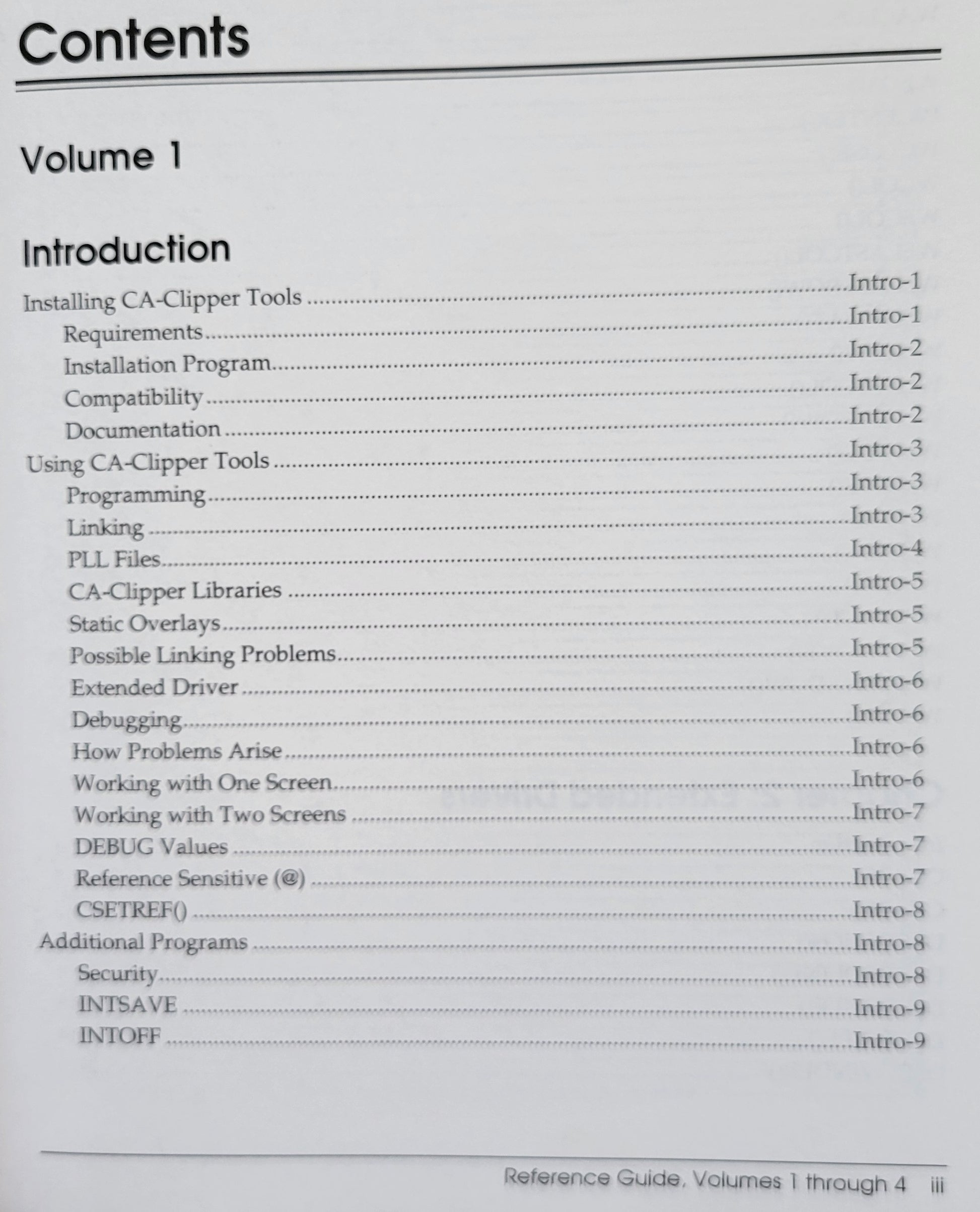 Vintage - CA Clipper Tools Reference Guide Vol. 1 for DOS